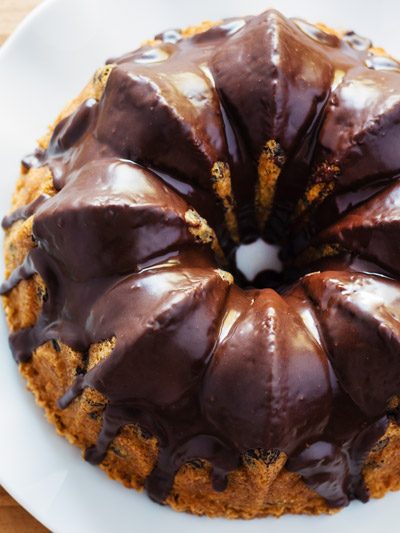 Bizcocho de Crème Fraîche y Glaseado de Chocolate